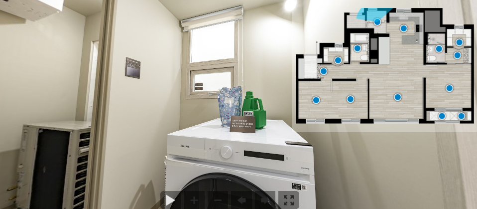 59타입인데 4베이로 구조가 잘 빠졌으며 드레스룸과 현관 펜트리까지 수납을 보완하였습니다. 침실 2, 3에 가벽을 트지 않는다면(옵션 선택가능) 방 3개로 활용도도 좋습니다.
