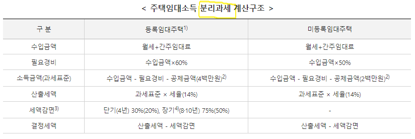 주택입대소득 분리과세 계산 구조는 아래와 같습니다.